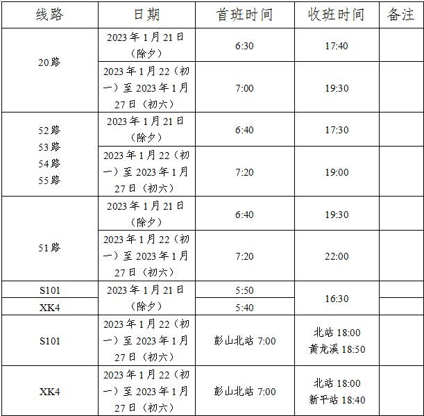 關于調整2023年春節(jié)期間城市公交和農村客運運營時間的通告